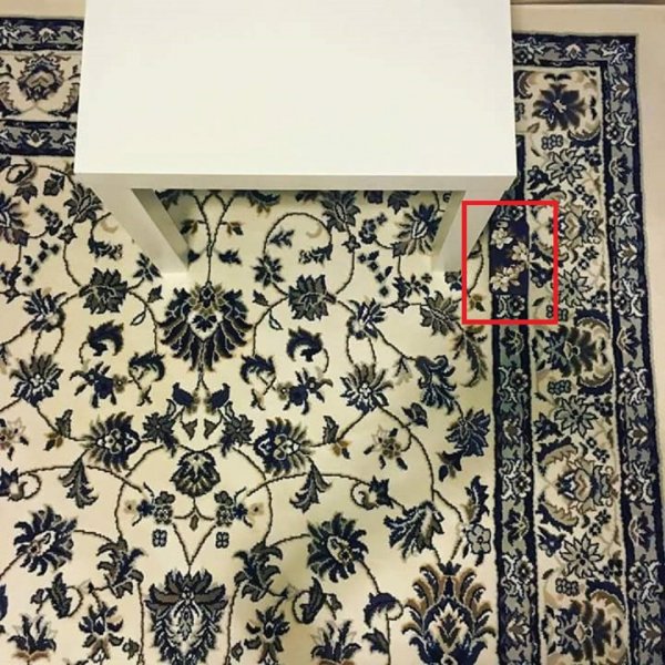 El celular no se ve a simple vista, ya que su capa de protección es muy parecido al estampado de la alfombra.