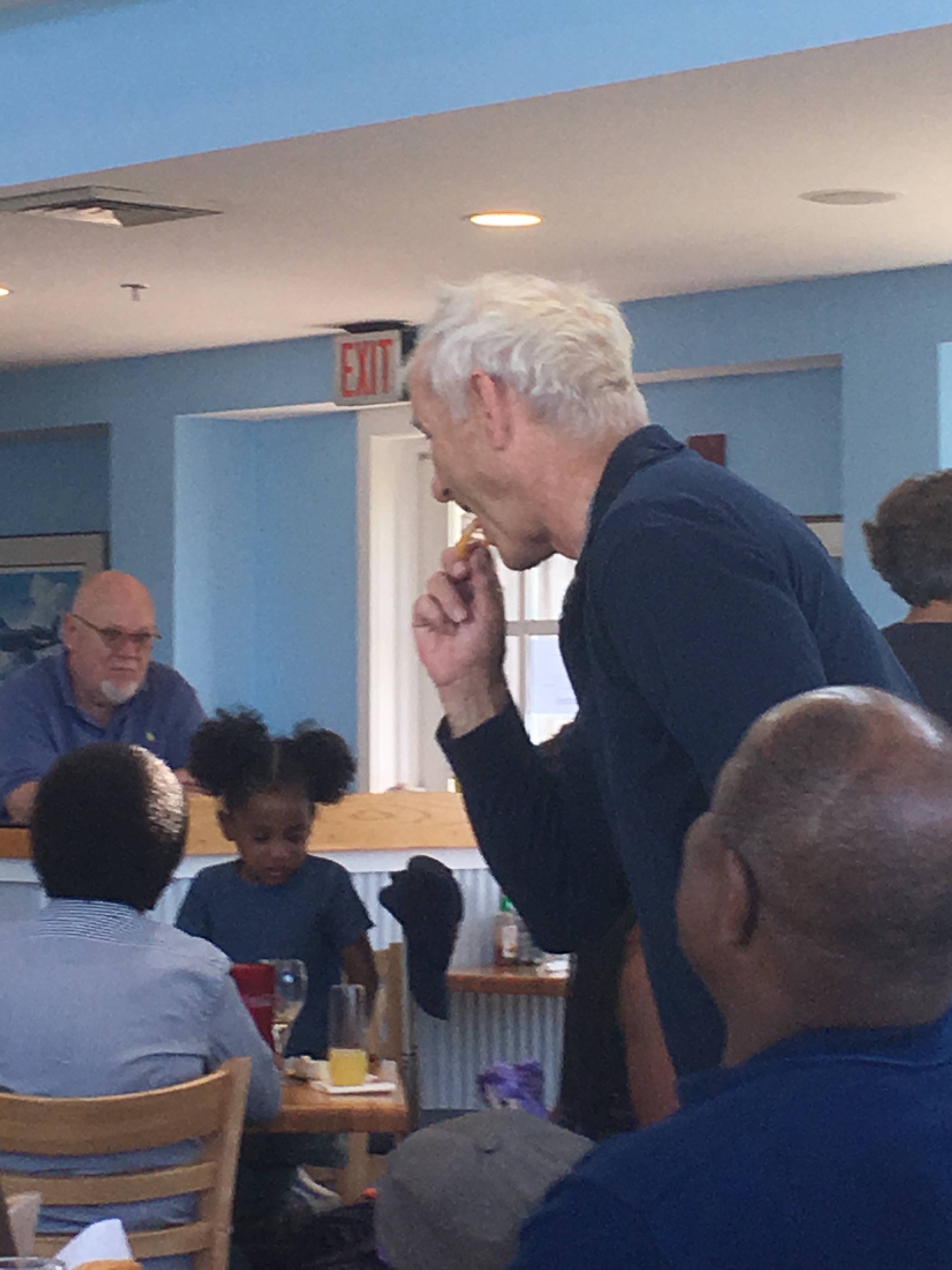 Al parecer el vuelo se había retrasado y el actor no dudó en perpetuar uno de sus pasatiempos favoritos y se dedicó a quitar papas fritas de las mesas de la gente.