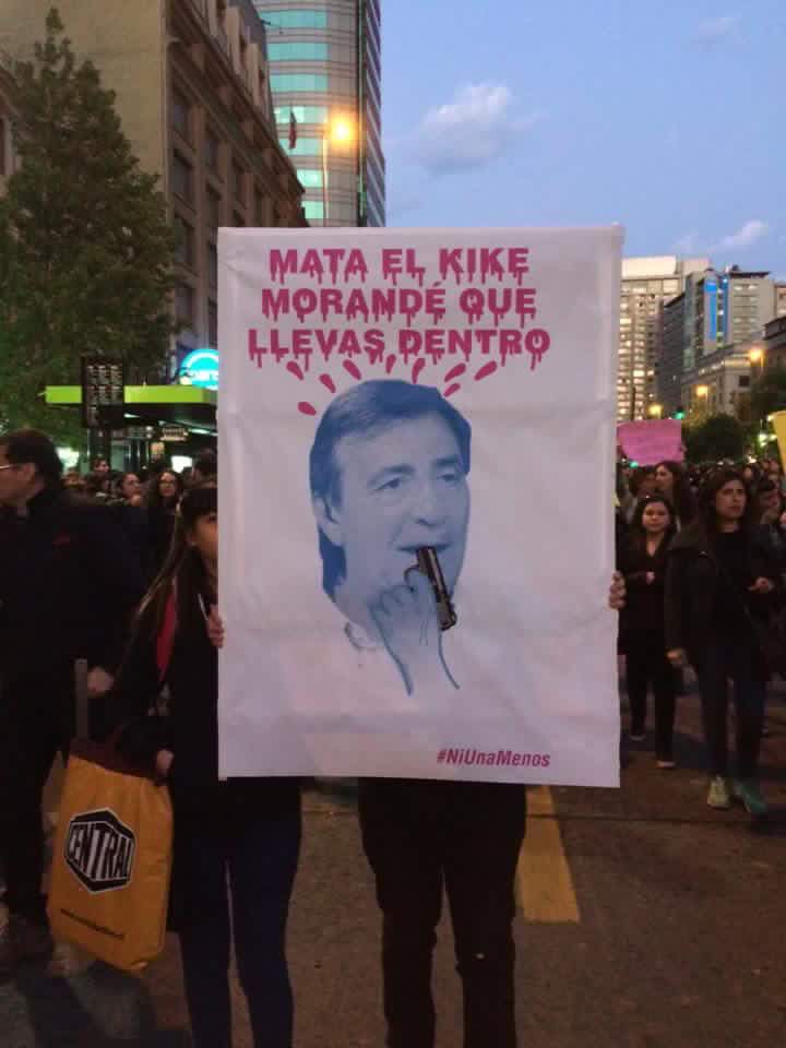 Literalmente, la pancarta decía “Mata el Kike Morandé que llevas dentro… #NiUnaMenos”, acompañada de una gráfica en la que el animador aparece con una pistola en la boca.