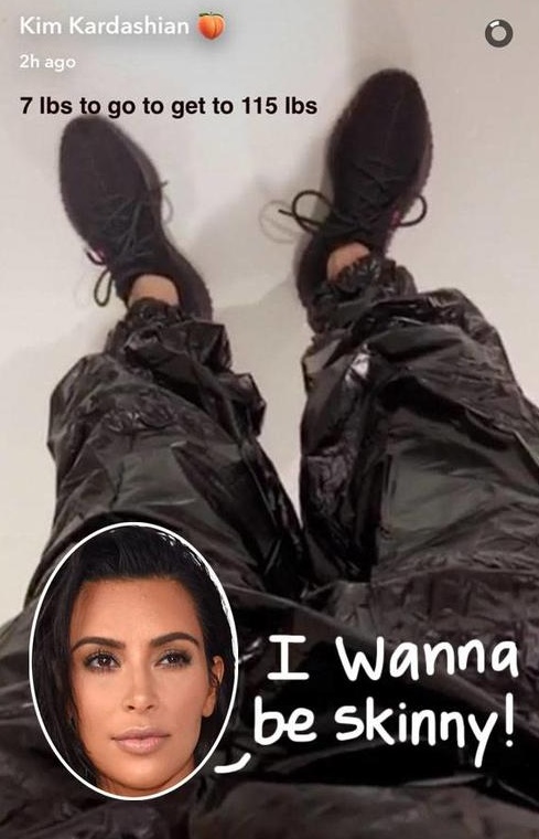 En la publicación de Snapchat se puede apreciar parte de su atuendo, muy parecido a una bolsa de basura, el que asegura, le ayuda a perder peso más rápido.