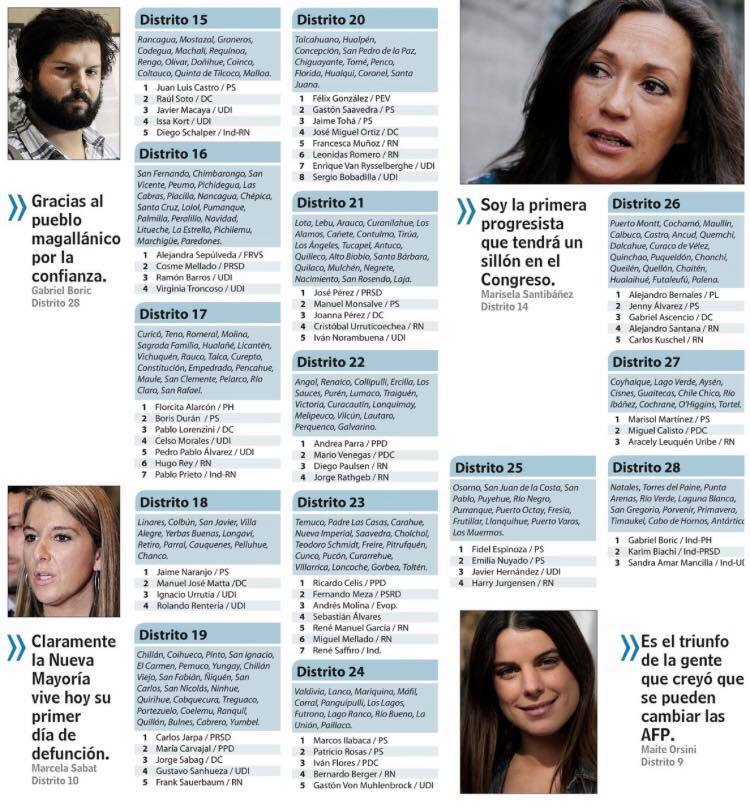 La periodista Pamela Jiles logró un cupo en el Congreso como Diputada del distrito 12, correspondiente a las comunas de La Florida, Puente Alto, La Pintana, Pirque, San José de Maipo, el tercero más grande del país.
