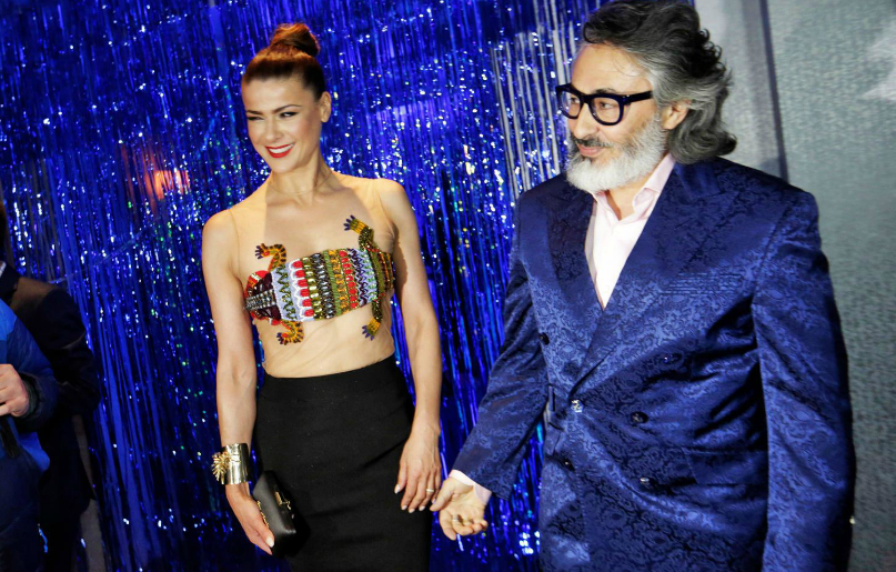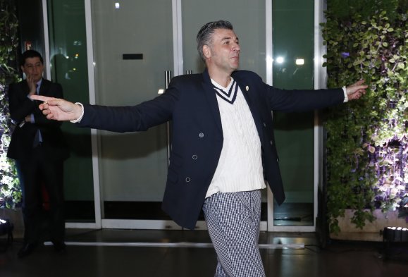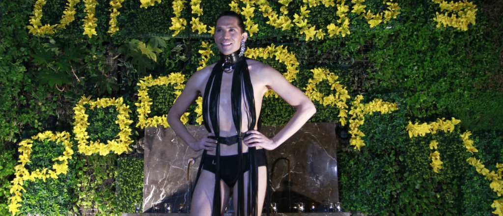 Di mondo, por su puesto, fue el rey de la velada luciendo un traje de baño negro y un atuendo de cuero estilo sadomasoquista como túnica.