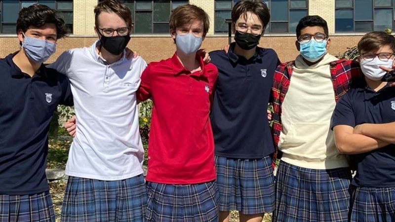 Alrededor de 100 alumnos masculinos del Colegio Nouvelles Fronti Frontières en Quebec, Canadá asistieron a clases con faldas. El objetivo era protestar contra el sexismo y apoyar a sus compañeras.