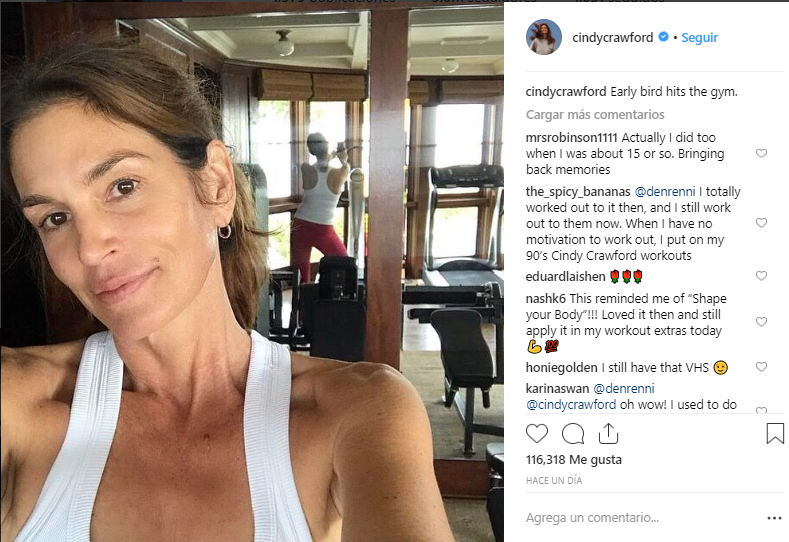 Cindy Crawford revolucionó la redes sociales con una selfie después del gimnasio, y demostró que está más regia que nunca a sus 52 años de edad.