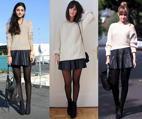 5 No guardes las faldas: Frío no es sinónimo de usar sólo pantalones. Tanto los vestidos como las faldas de invierno, son perfectas para combinarlas con medias de lana en tonos oscuros.