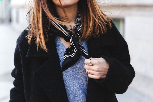 6 ¡Este es un buen complemento!: En vez de usar bufandas muy gruesas, usa pañuelos más delgados. Así no añadirás volumen extra a tu cuerpo y tendrás un punto extra para tu look.
