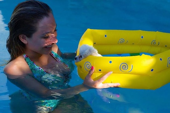 Sin embargo, este domingo la polola de Cristóbal Álvarez publicó una nueva fotografía junto a su mascota, pero nadando en una piscina.