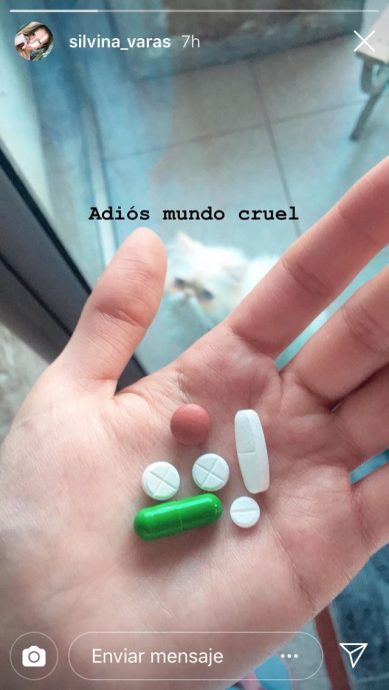 La ex chica reality Silvina Varas ya había preocupado a sus seguidores en redes sociales, al haber publico en sus historias de Instagram su mano llena de pastillas con el comentario "Adiós mundo cruel".
