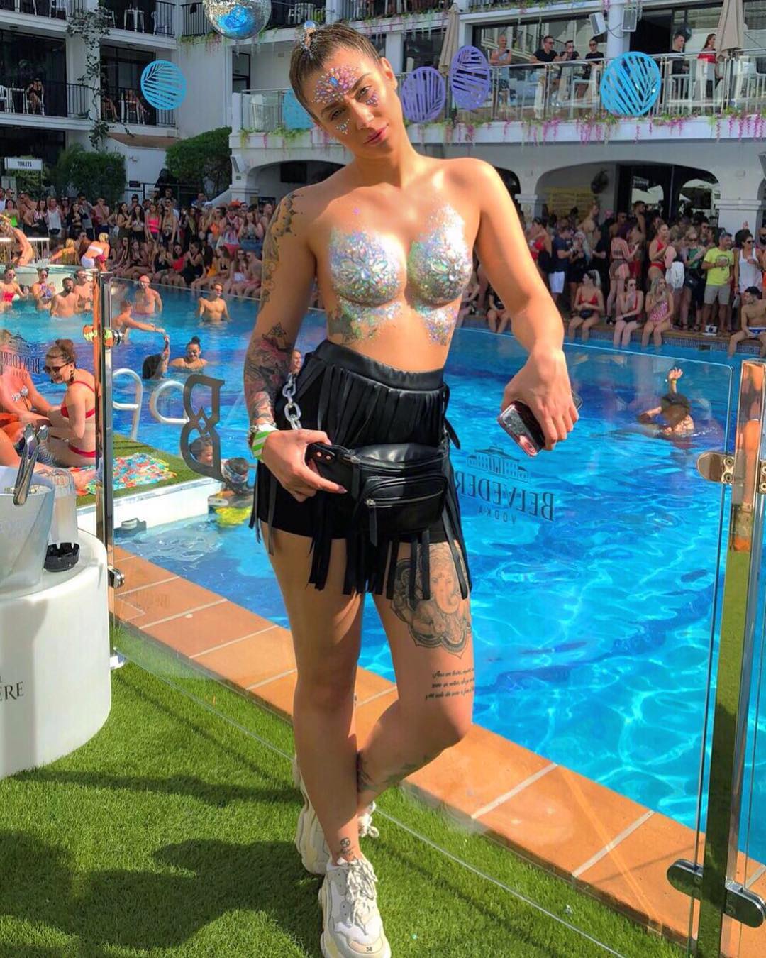 La ex chica reality tapó sus pechos solo con cristales brillantes y glitter, llenándose de elogios en la red social.