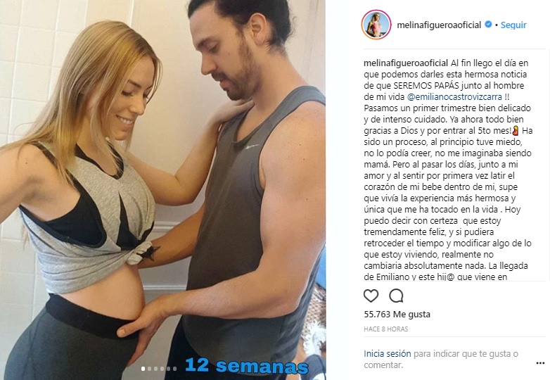 "Al fin llegó el día en que podemos darles esta hermosa noticia de que seremos papás junto al hombre de mi vida @emilianocastrovizcarra!! Pasamos un primer trimestre bien delicado y de intenso cuidado. Ya ahora todo bien gracias a Dios y por entrar al 5to mes!", comienza relatando Figueroa.
