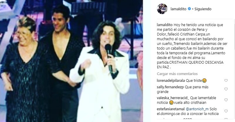 "Tremendo bailarín, además de ser todo un caballero, fue mi bailarín durante toda la temporada del programa. Lamento desde el fondo de mi alma su partida" escribió Maldonado.