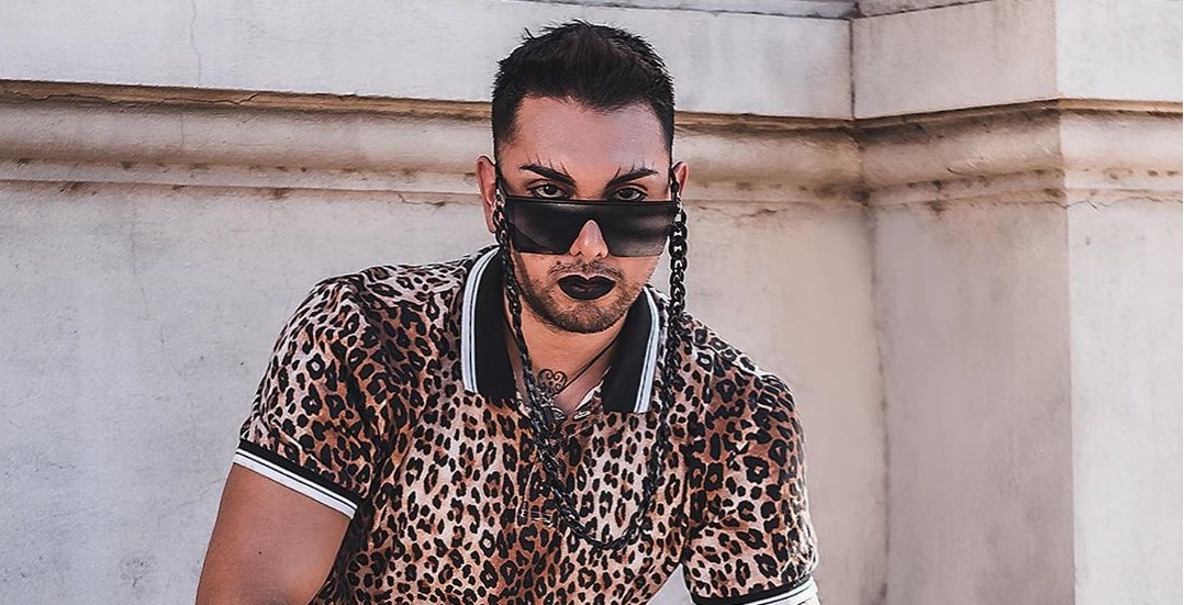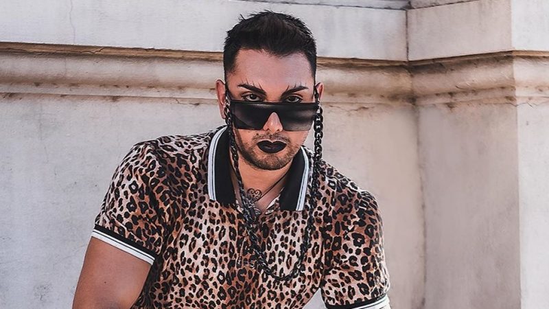 Esta foto forma parte de una sesión que realizó Erik, donde además destaca su maquillaje dramático y en tonos oscuros.