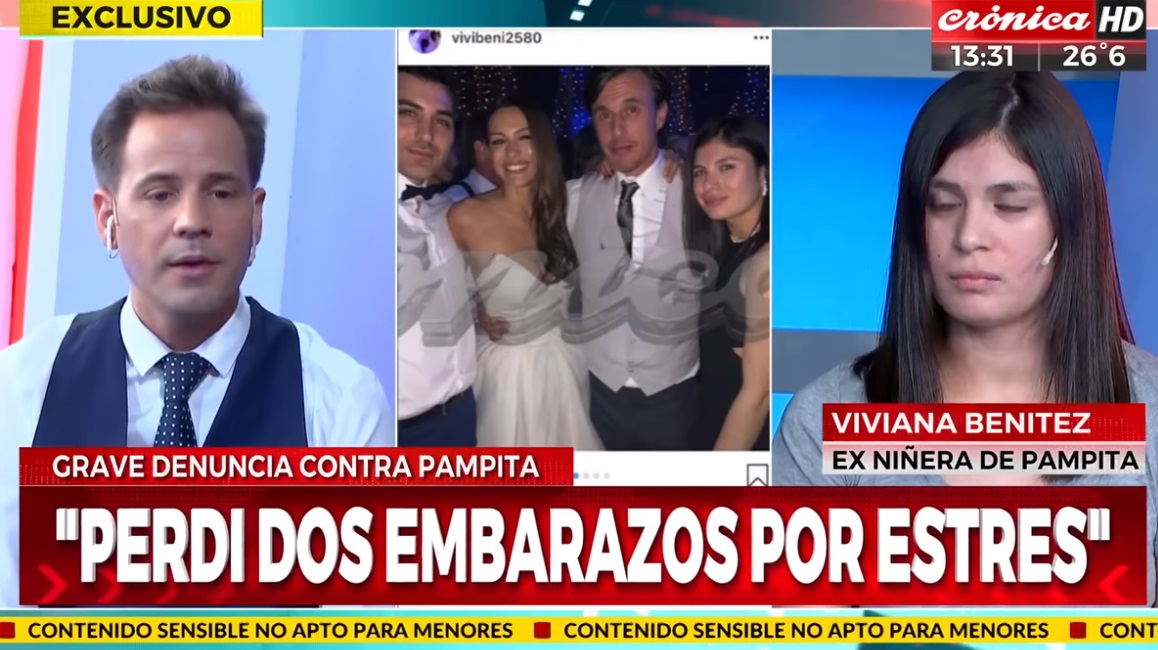 La mujer, Viviana Benítez, trabajó como niñera para Pampita desde 2014 hasta este años. Ella denunció a la trasandina de maltrato psicológico y hostigamiento.