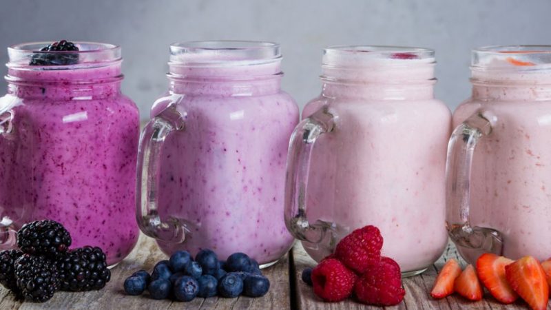 Para obtener esta deliciosa bebida, solo debes mezclar en la licuadora: frutillas (fresas), arándanos y frambuesa. A esto le agregas un poco de plátano y espinacas, y media taza de yogurt griego. También puedes poner un poco de leche.