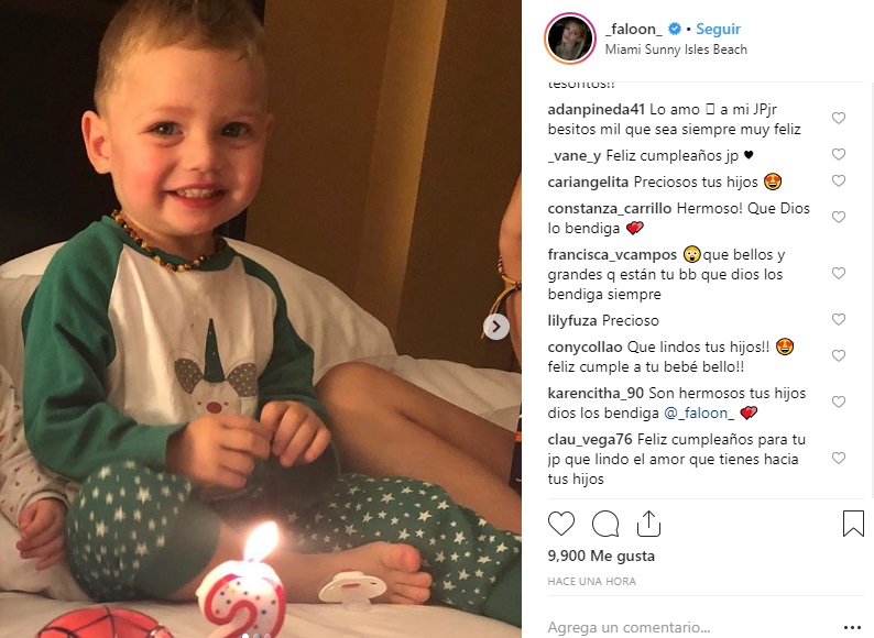 "Feliz cumpleaños hijo, mi vida, mi Jp. Te amo con mi vida y haré hasta lo imposible para nunca se borre de tu carita esa sonrisa. Que seas feliz siempre mi Jp. 🎁🎂 #JP #2añitos #felizcumpleJP" , fue el mensaje que compartió Faloon.