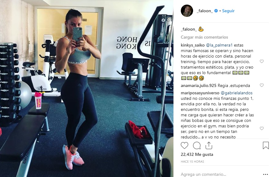 Luego Faloon volvió a compartir más postales en que se puede apreciar su abdomen y entre los comentarios que recibió, hay uno en particular que llamó su atención. Una de sus seguidoras le consultó sobre sus operaciones, dando a entender que era algo evidente.