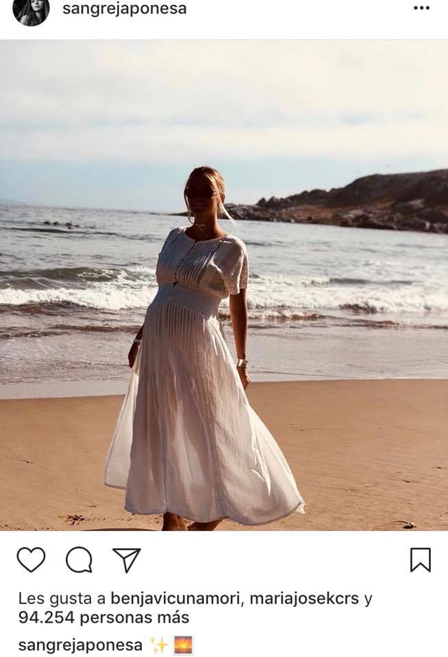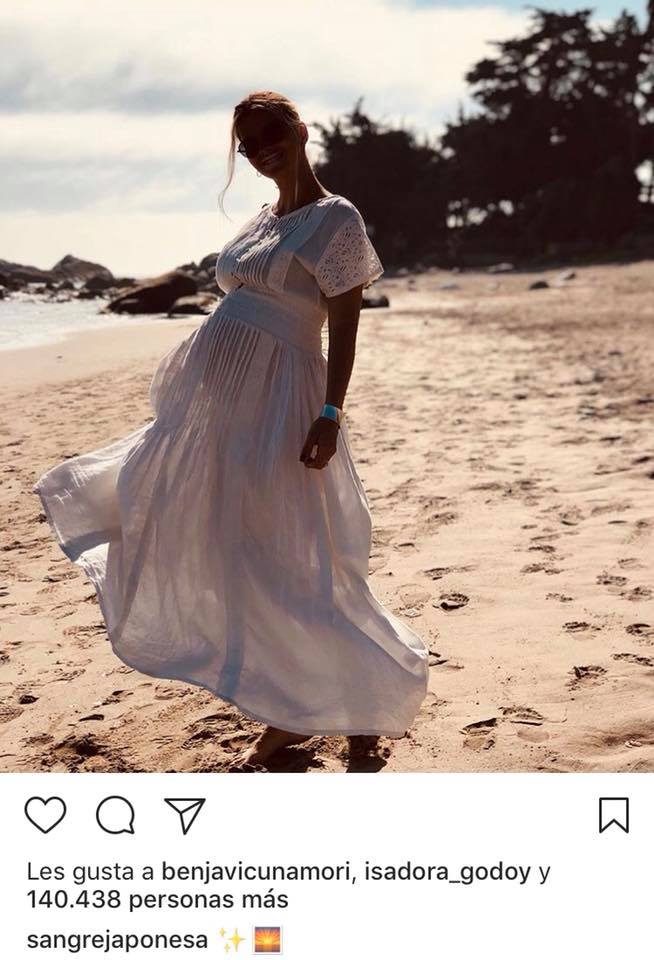 La China además lució, completamente su pancita de 8 meses de embarazo, con bikini y con un vestido blanco.