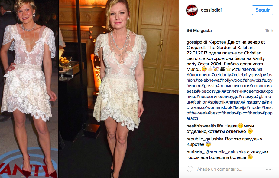 Kirsten Dunst se lució y sacó aplausos en las redes sociales con un vestido que ya había usado antes. La actriz apareció en una alfombra roja con un vestido que utilizó en 2004 para una fiesta de los premios Oscar.