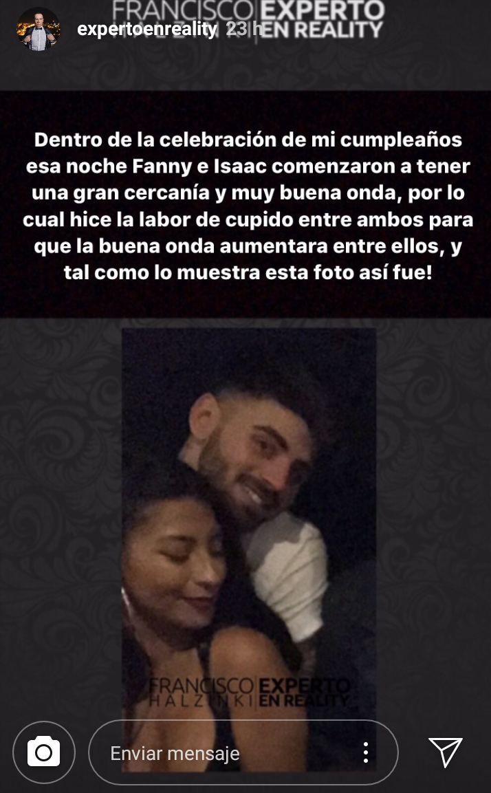 Todo comenzó el viernes pasado, durante la celebración de cumpleaños de Francisco Halzinki, autodenominado 'experto en reality', según él mismo lo confirmó en sus Instagram Stories.