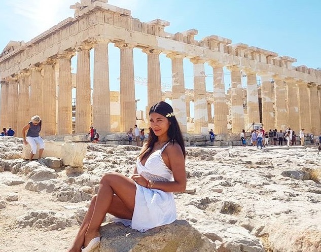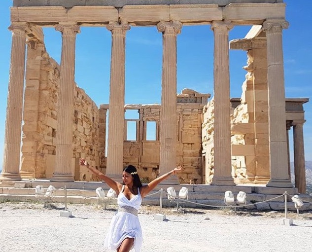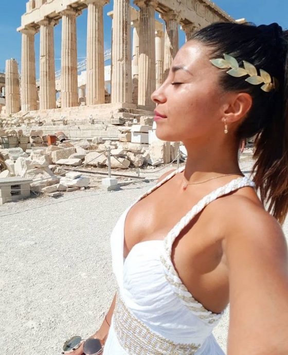 En las primeras fotos posa con un vestido blanco y corona de laureles como una diosa griega entre las ruinas de los templos de la antigua civilización.