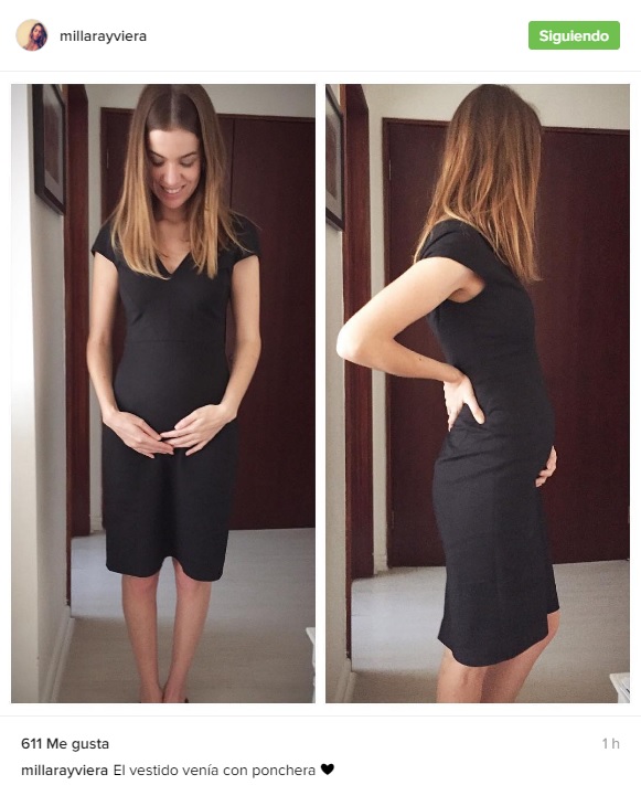 "El vestido venía con ponchera", escribió en Instagram junto a una foto donde aparece mostrando su guatita de embarazo.