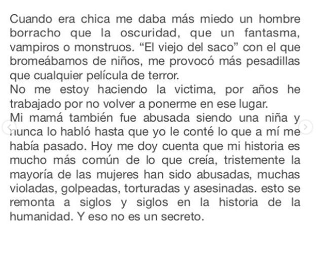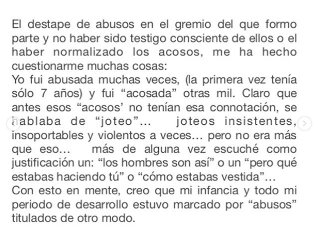 Sin embargo, la actriz también aprovechó este post para referirse a su situación. Fue aquí donde dio a conocer un caso de acoso sexual que sufrió cuando tenía 19 años.