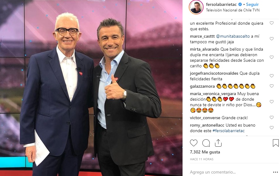 Los cibernautas fueron rápidos en enviar mensajes de apoyo y felicitaciones a Fernando por su regreso a TVN. “Eres un crack donde estés, ¡estoy llorando!”; “Te lo mereces, eso es reconocer lo bueno y volver a casa. Pedro te esperaba”; “Fer espero que ahora te valore TVN. ¡Eres un excelente!” y “buena dupla con don Pedro”.