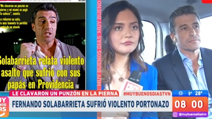 Un violento asalto sufrió la noche de este martes el periodista Fernando Solabarrieta, quien fue víctima de un portonazo junto a sus padres, en la comuna de Providencia. El periodista deportivo fue agredido con un punzón, mientras que su madre sufrió un fuerte golpe en la cabeza al caer al suelo.