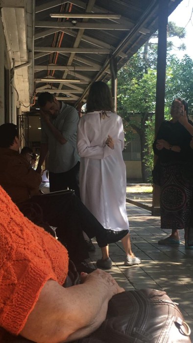 En la fotografía se ve a la actriz junto a Javiera Díaz de Valdés, quien interpreta a Amelia/Agustina, vestidas con camisas blancas, dando la impresión de que estuviesen en un psiquiátrico.