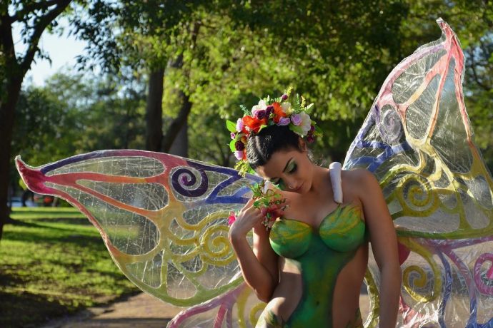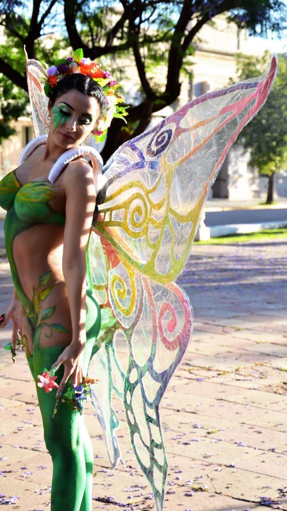 En el marco de un desfile del Festival de Arte de Villa María, al que fue invitada a participar, Flavia Medina se lució con una espectacular sesión de cuerpos pintados.