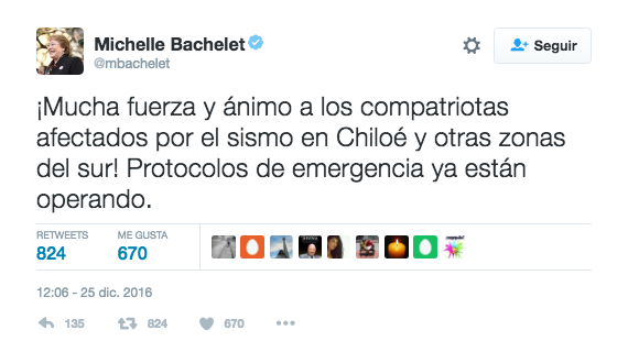 De igual manera, se reiteró la prohibición de estar en zona de playas y que hasta el momento no hay afectación de vida humana, que en Los lagos se ha evacuado a más de cuatro mil personas, y que hay una interrupción de una vía en Quellón y cortes parciales de electricidad.