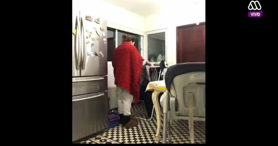 En la captura se ve a la animadora en pijama, con un chal rojo encima, calcetines de polar y pantuflas. “¡Qué son pesados!", dijo la conductora, mientras sus compañeros se reían de su look "desarreglado".