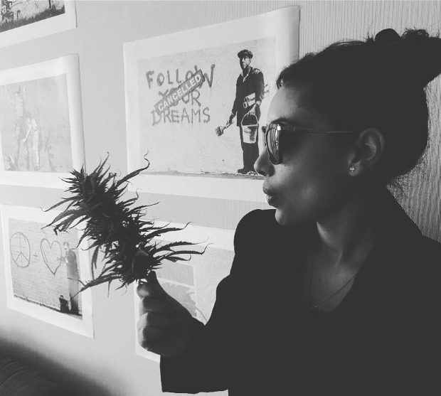 Por lo mismo, la última foto de 'Arenita' en la red social sorprendió a muchos. Se trata de un retrato en blanco y negro donde la joven posa con un ramo de cannabis en su mano.