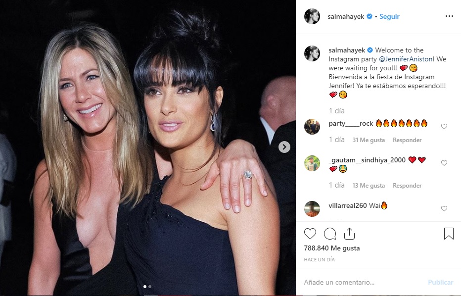 La intérprete de 'Rachel Green' en la recordada serie no solo causó estragos entre sus fanáticos, sino también en varios de sus colegas en Hollywood. Uno de ellos fue Salma Hayek, quien quiso darle la bienvenida a Jennifer con dos infartantes fotos del recuerdo.