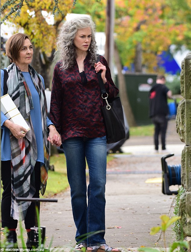 A la actriz la paparazzearon en un parque en Sidney, Australia, con un impactante look: pelo largo ondulado y completamente canoso.