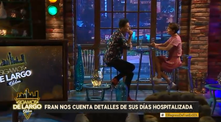 Luego de ser dada de alta, este lunes Fran retornó a Canal 13 para dar una sincera entrevista a su compañero de labores, Sergio Lagos, en "Sigamos de Largo".