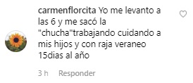«Me saco la chucha todos los días levantándome a las 4 de la mañana para ir a trabajar y después cuido a mi bebé el día completo… no veo cual es la diferencia con cualquier persona..un abrazo», fue su respuesta.