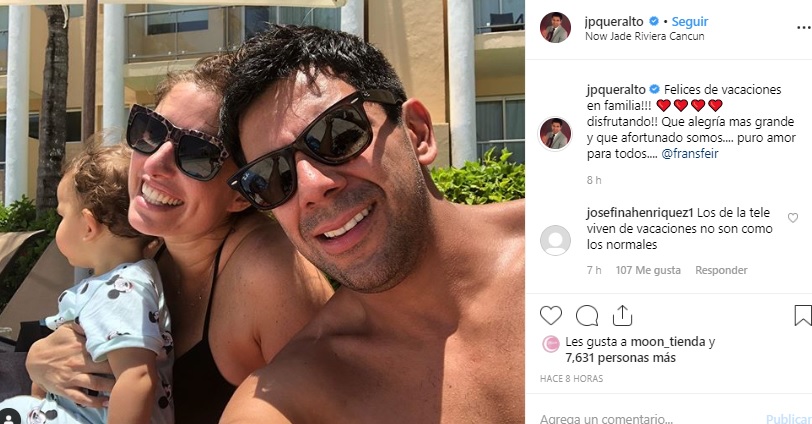 Actualmente la pareja de comunicadores, Francisca Sfeir y Juan Pablo Queraltó, se encuentran de vacaciones en Cancún, México, junto a su hijo Amador.
