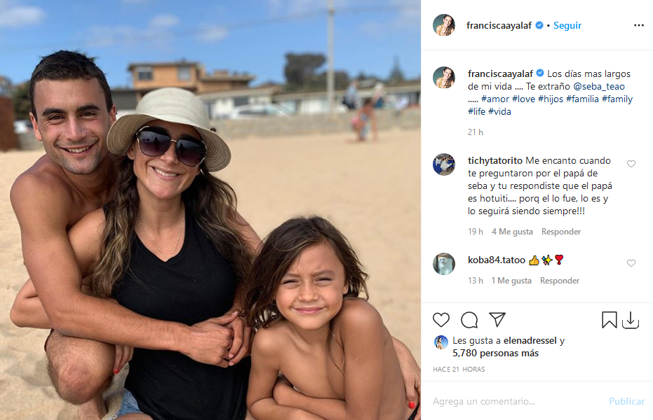 Ahora, Ayala quiso recordar aquellos días familiares, que hoy muchos extrañan debido a la cuarentena y el distanciamiento social. Con una tierna postal de ella y sus dos hijos, la modelo escribió: "Los días mas largos de mi vida .... Te extraño @seba_teao".