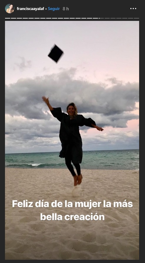 Con fotos posando con su capa de graduación, Fran escribió: "Cerrando un ciclo.... Titulada en Nutricion en EEUU. Gracias a mis hijos por ser el motor de motivación para ser cada día mejor, a mi amado compañero por apoyarme para siempre avanzar. Que no exista límites a tus sueños, si quieres algo ve por ello.... A mi madre gracias por siempre 🙏 ❤️".