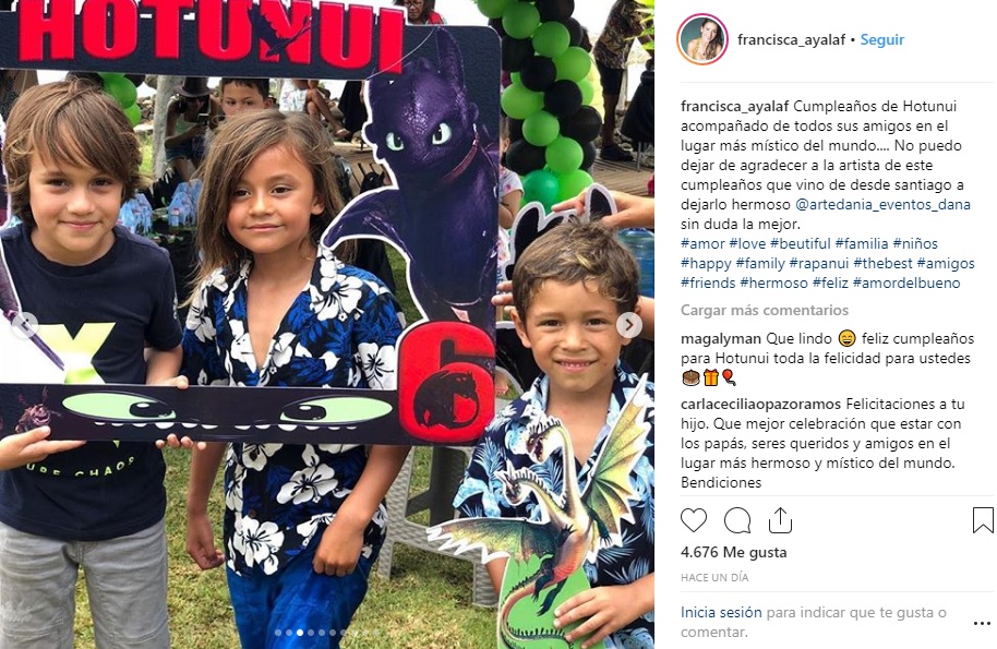 Fran quiso dedicarle además a su pequeño hijo un emotivo mensaje que decía: "Cimpleaños de Hotunui acompañado de todos sus amigos en el lugar más místico del mundo".