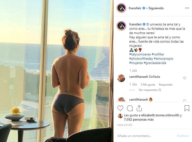 'El universo te ama tal y como eres... tu fortaleza es más que la de muchos seres! Hay alguien que te ama tal y como eres... fuente de vida somos todas las mujeres', escribió la ex figura de Canal 13 para acompañar la instantánea.