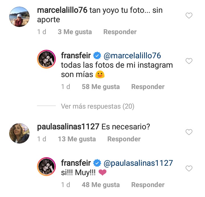 Eso sí, Francisca Sfeir se dio el tiempo de contestarles a todos.