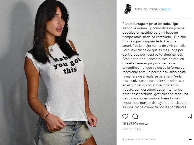 "A pesar de todo, sigo siendo la misma... y como dice un poema que alguien escribió para mi hace un tiempo atrás, nada ha cambiado... El dicho “no hay que comprenderla, hay que amarla” es la mejor forma de vivir con ella. Porque el cliché de que es más linda por dentro que por fuera es totalmente real", escribió junto al nuevo look.