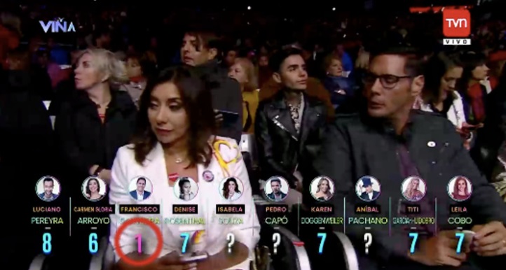Fue durante la competencia, en la presentación de Chile y Venezuela, que Francisco Saavedra evaluó a ambas canciones con la nota mínima.
