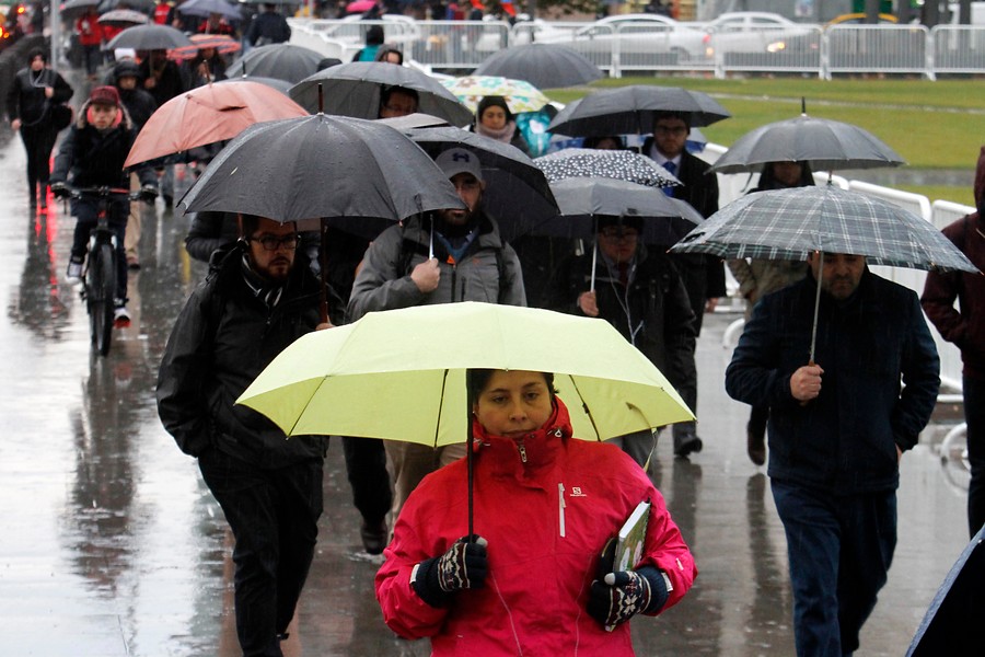 - La Dirección Meteorológica actualizó los pronósticos del frente de mal tiempo. Se espera nieve, lluvia y fuertes vientos. De acuerdo a Emol, se esperan 60 mm de agua caída y cerca de 100 centímetros de nieve. Los vientos alcanzarán los 70 kilómetros por hora.