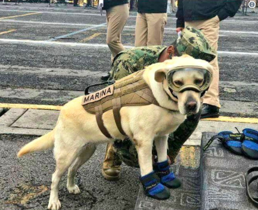 Es una labradora de seis años que ha rescatado a más de 52 personas, ella forma parte del equipo de Búsqueda y Rescate de la Secretaría de Marina y va totalmente equipada para poder desarrollar sus labores. Lo más distintivo es un visor que protege sus ojos del humo y las partículas del polvo y unas botas que resguardan sus pequeñas patas.