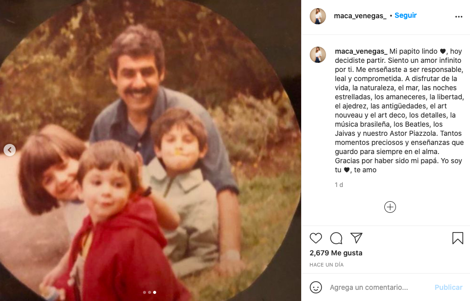 En dicha red social, la abogada contó a quienes la siguen que su papá falleció, compartiendo una foto de ambos y otras antiguas en donde aparece el resto de su familia.