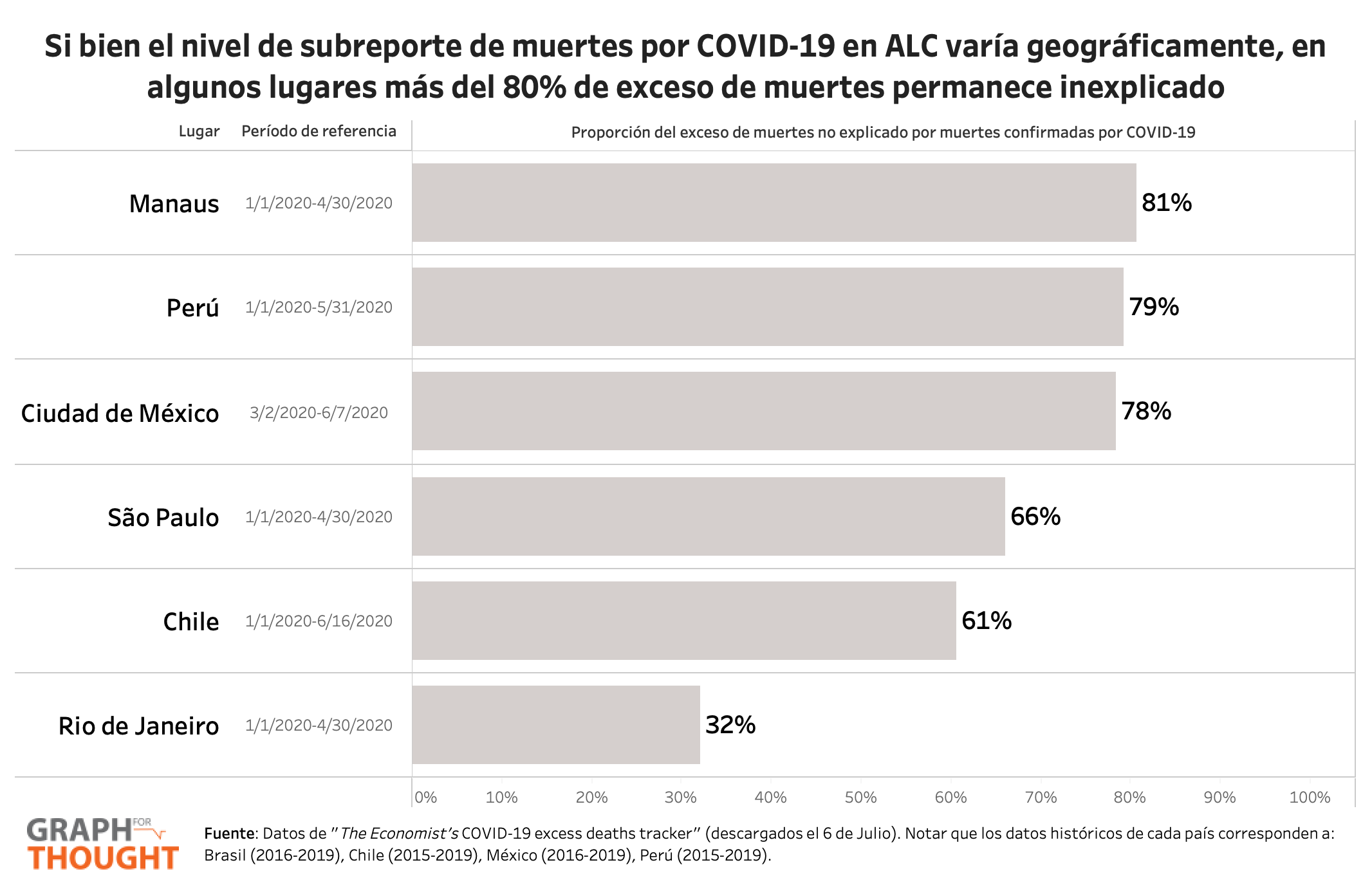 Según López-Calva, existiría una tasa de subreporte de las muertes del 61% en Chile, mientras que la tasa de Perú y Ciudad de México sería de casi 80%. El cálculo se basa en el exceso de mortalidad, una diferencia entre el número real de muertes y el número esperado en un lugar y espacio de tiempo determinado.