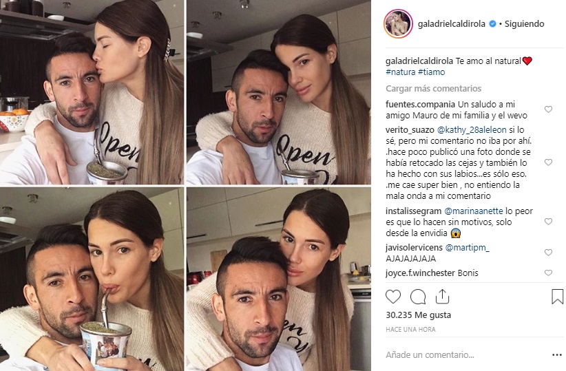 "Te amo al natural", escribió la española en Instagram para acompañar las fotos en las que posa junto a Mauricio Isla.